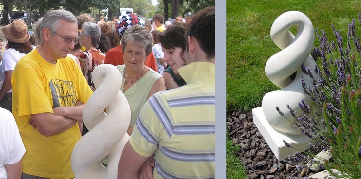 My first sculpture was a double twist, created for my wife, Marion, who was also keen to produce stonework, but was taken suddenly ill, and spent the whole week of the 2007 symposium in a critical condition in hospital. I completed the double twist between hospital visits and presented it to Marion on the last day of the symposium, which was her first day out of hospital.